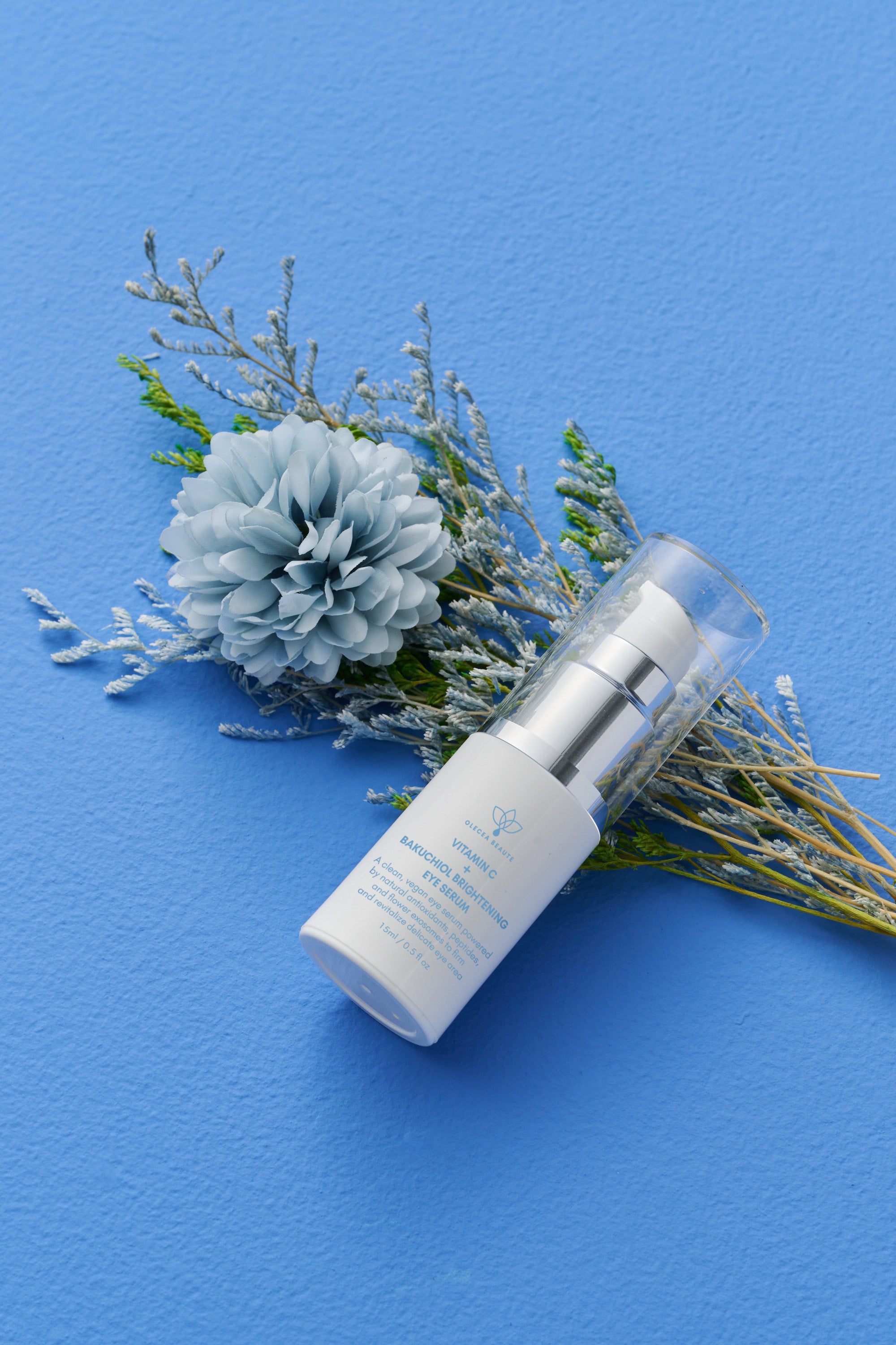 A: When combining our two elements, Vitamin C + Bakuchiol Brightening Eye Serum and Glow + Lift Roller, it amplifies the effect around the delicate eye area. Our eye serum is designed to smooth out lines and wrinkles, brightens and firms the eye area.